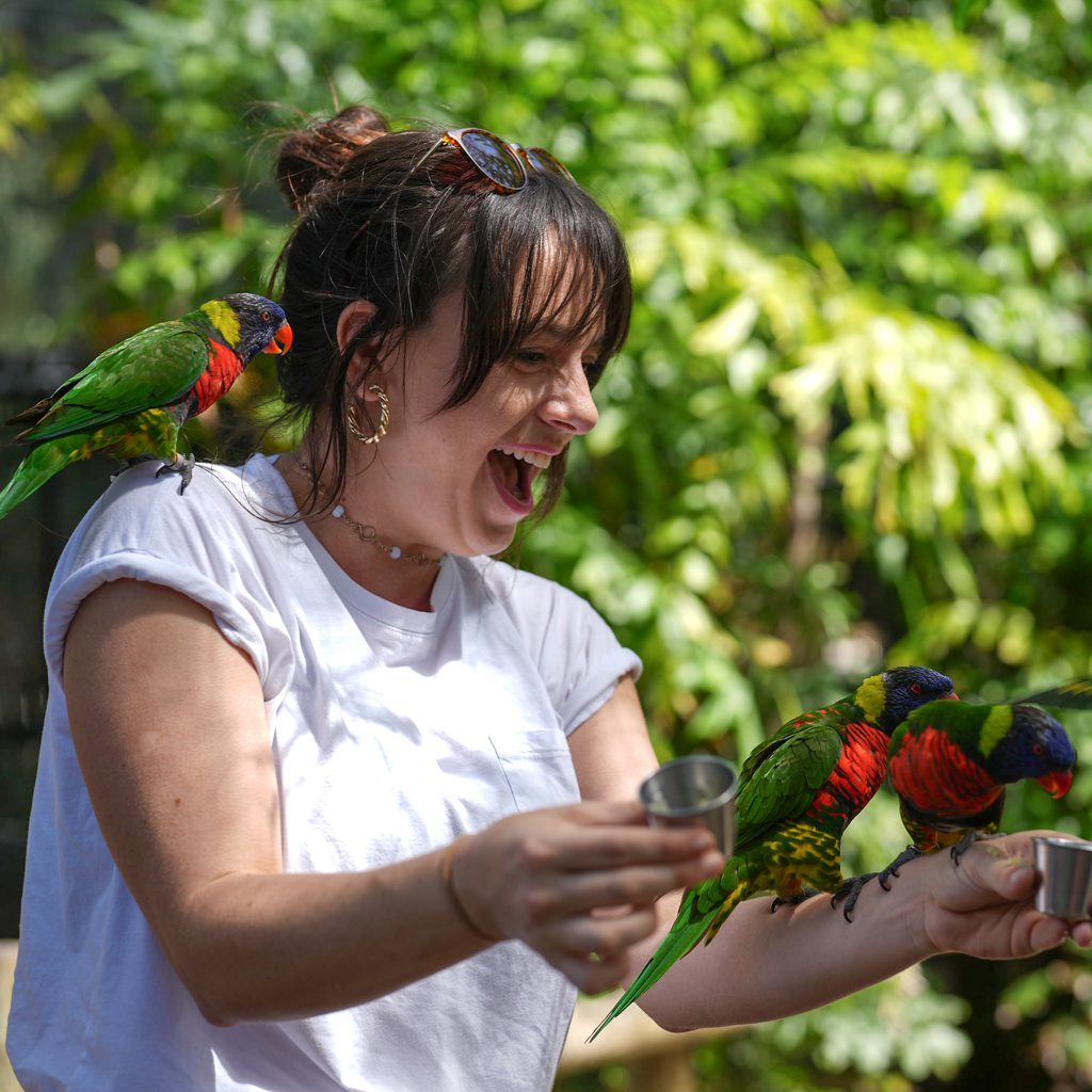 Enter the free-flight aviary in Lands of Change to experience the magnificence of lorikeets and cockatiels firsthand. Get up close and personal as these tiny Australian parrots land on your arms to drink nectar or nibble on seed sticks.