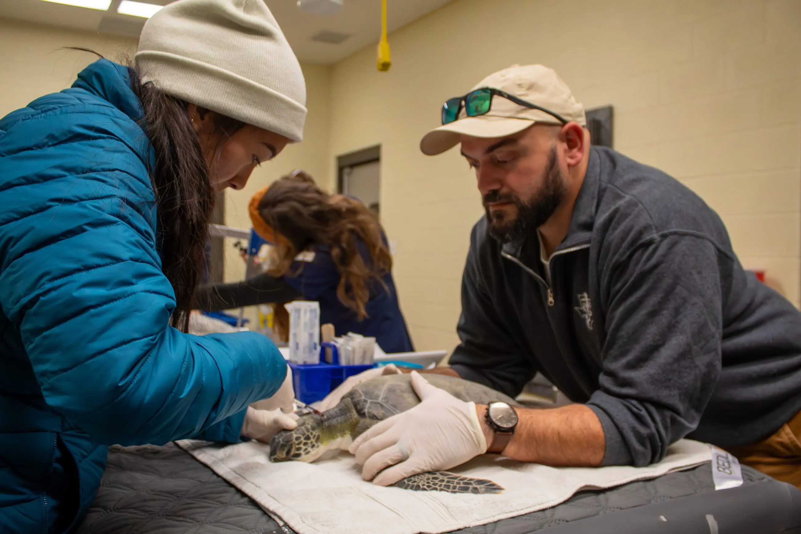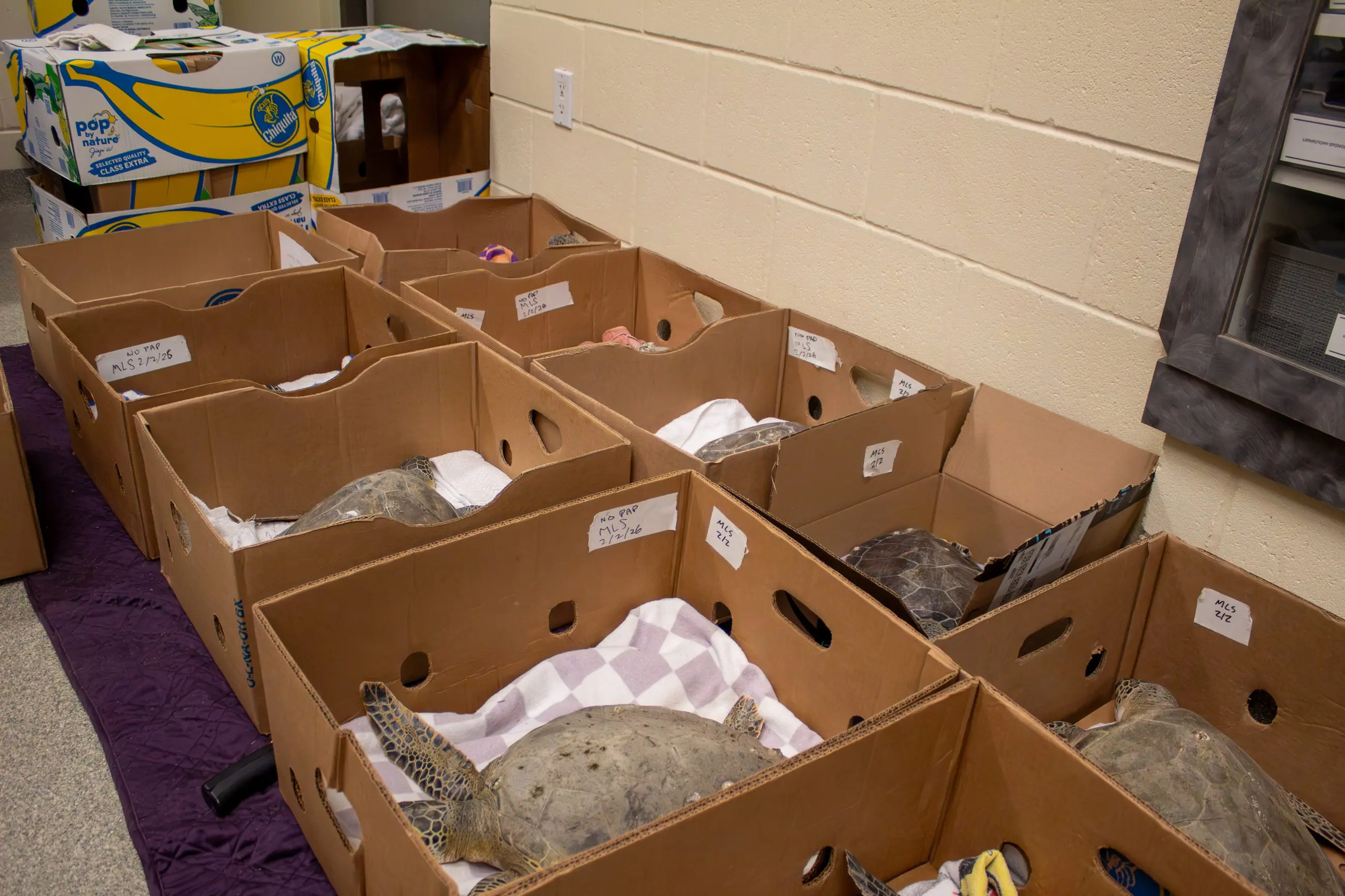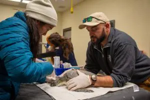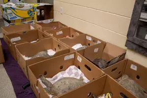 Noting the expected cold temperatures, our veterinary team prepared in advance for this influx by stockpiling items from medical supplies to bins to hold sea turtles in as they slowly came back to a normal temperature. This puts a strain on our supply and staffing budget.