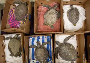 We expect more cold-stunned sea turtles to be found in the coming days. Please, do not attempt to warm these sea turtles on your own. Cold-stunned sea turtles need specialized care and may be experiencing illnesses or injuries beyond the cold-stunning. If you’re in Brevard County, please contact the Sea Turtle Preservation Society at 321-206-0646 or Florida Fish and Wildlife Conservation Commission 1-888-404-FWCC for further instructions.