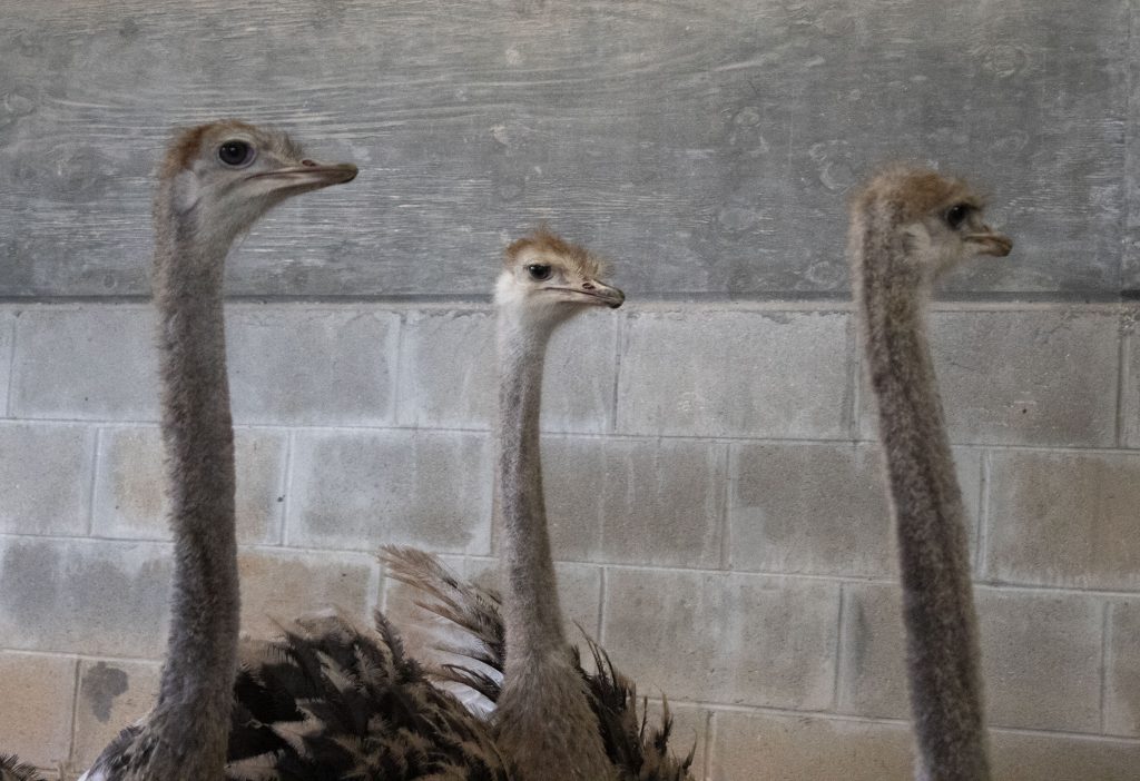 At only 6-months-old, they still have a bit of growing to do before being introduced to our other two ostriches, Linda and Little Foot. They’ve shown lots of interest in their keepers, with Lacey being the most outgoing. All three have been indulging in the extra attention and are always ready for a lettuce snack.
