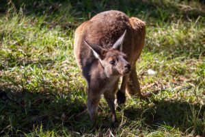 Aside from the difference in the hue of their coats, grey kangaroos are generally smaller and slimmer than red kangaroos. They have soft coats, beady eyes and big ears.